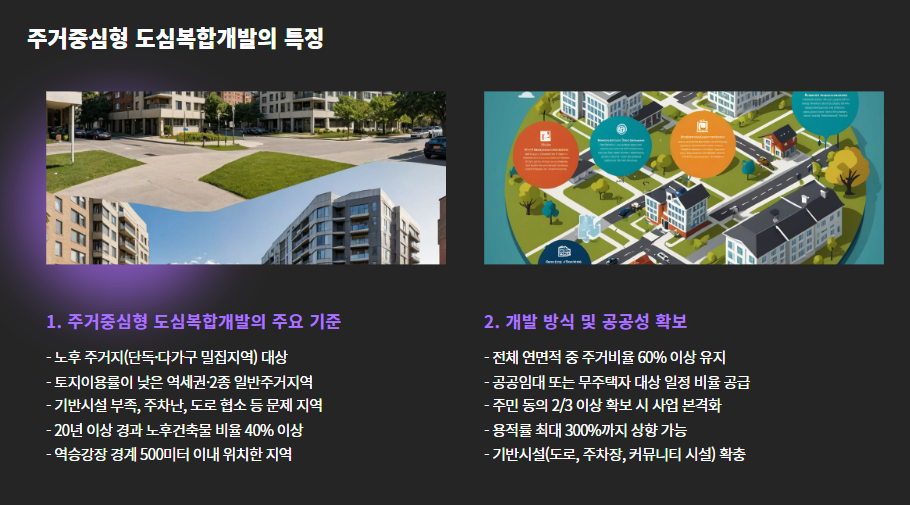 말 그대로 도심 내 주거 공급을 주된 목표로 하는 개발 방식입니다.