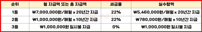 Q5: 당첨금 실수령액은 어떻게 계산되나요?