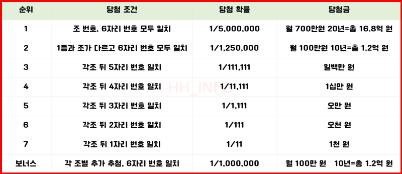 연금복권720 당첨확인 당첨번호 확률 1등 2등 실수령액