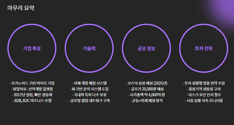 | 기업 특징 | 오가노이드 기반 정밀의료·신약개발 플랫폼 기업 |