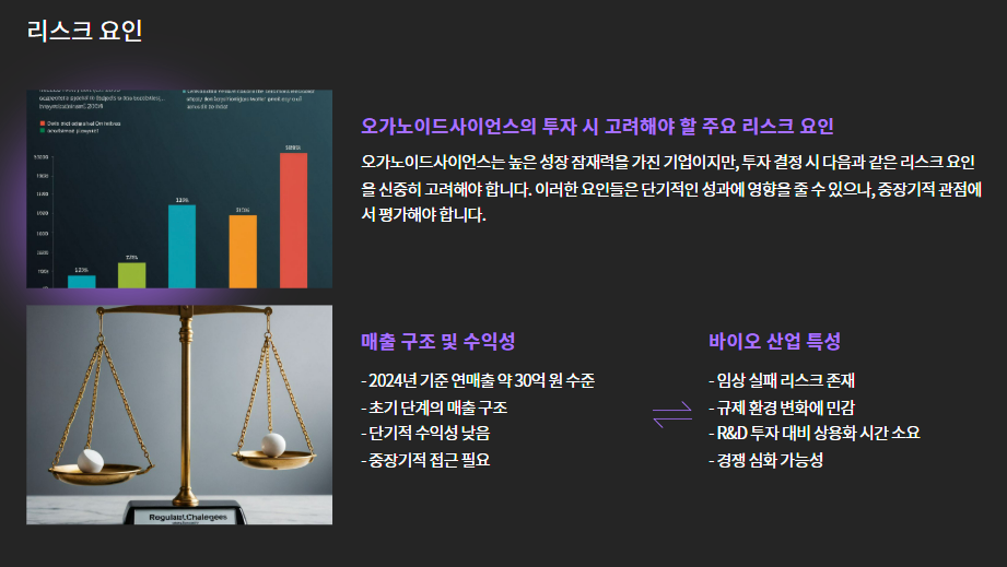 - 바이오 특성상 임상 실패·규제 리스크 존재