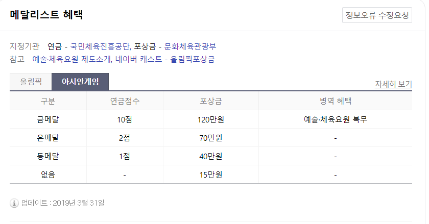 메달을 따게 되면 연금 점수를 받게 되는데, 이는 올림픽의 경우 아시안게임보다 높습니다.