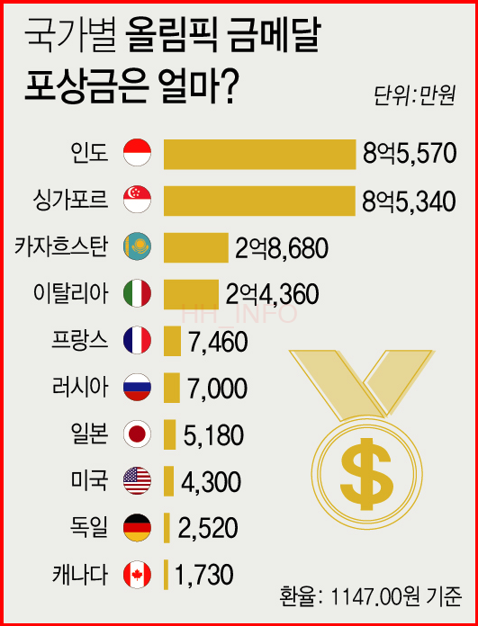2024 파리올림픽이 개막한 가운데 각 나라의 메달 포상금 규모에 관심이 쏠리고 있다. 올림픽 메달은 선수 개인에게 큰 영광이지만 국가에도 큰 성취이기 때문에 ...