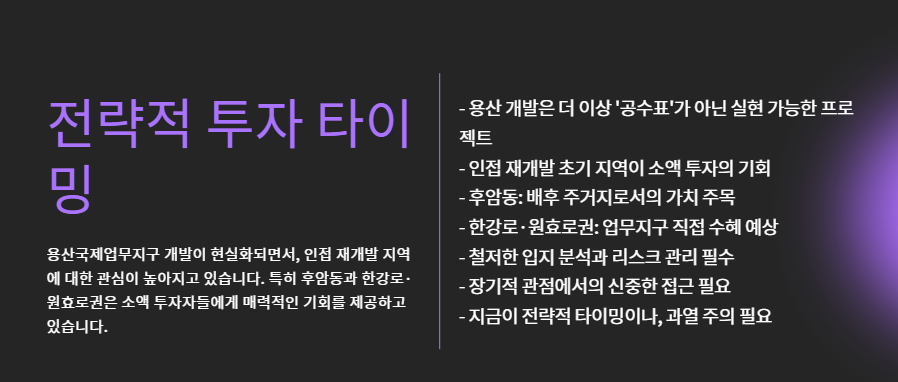 - 용산의 대형 개발 흐름이 “한강 동측 → 서측”으로 번질 가능성 주목
