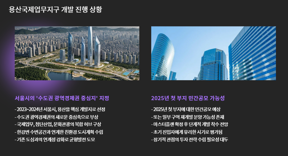 - 개발 키워드: 글로벌 금융허브, 업무·주거 복합단지, 최고급 상업지구