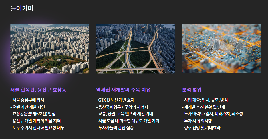 효창동 역세권 재개발은 단순히 주거 환경 개선에 그치지 않습니다. 용산구 전체 개발 플랜과 함께, 글로벌 비즈니스 허브로 거듭나기 위한 초석이 될 가능성이 큽니다. 이에 따라 장기적으로 안정적인 시세 상승과 자산가치 상승이 기대됩니다.