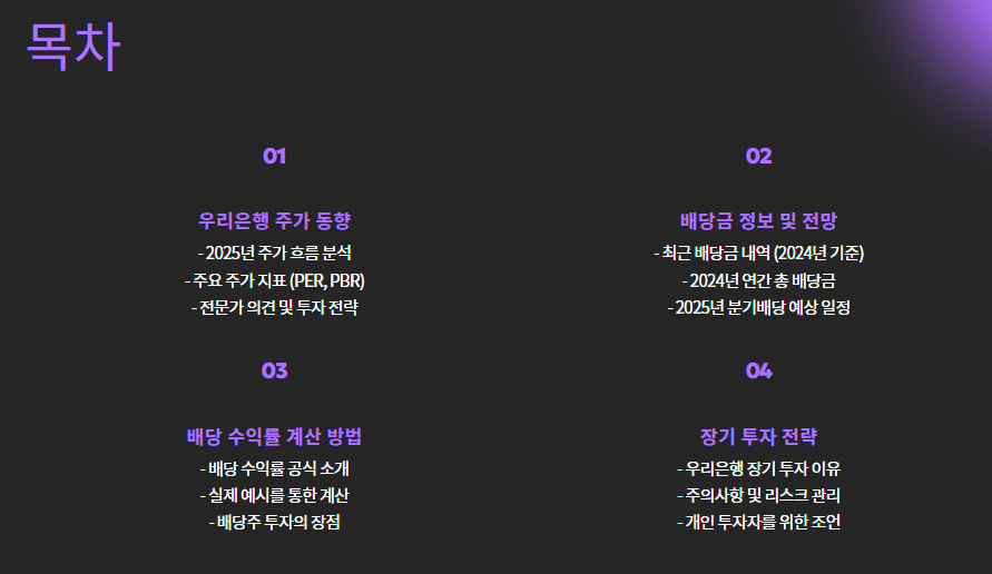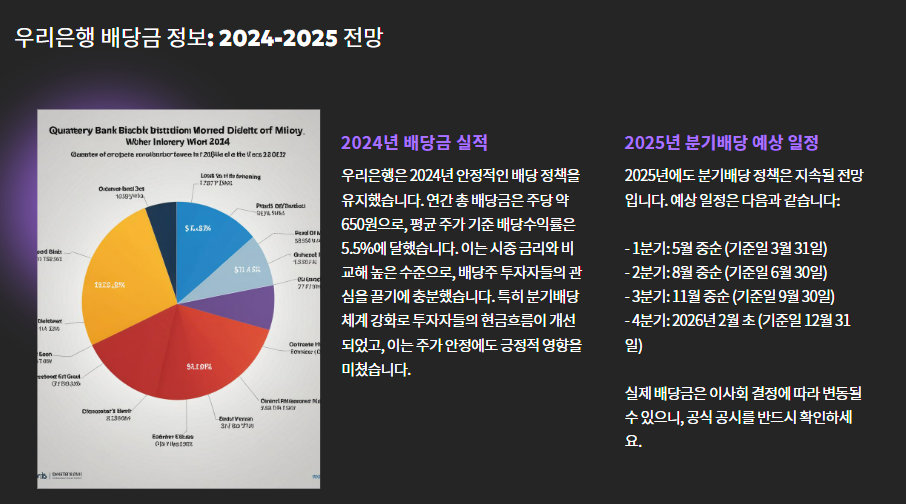 요즘 같은 불확실한 시장 속에서 ‘배당’이라는 단어는 투자자들에게 큰 위안이 됩니다. 그중에서도 우리은행은 안정적인 실적과 더불어 정기적인 분기배당 정책으로 주목받고 있죠.