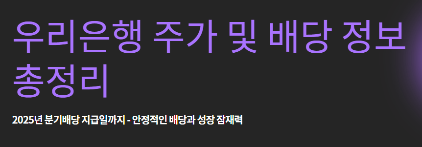우리은행 주가 및 배당 정보 총정리|2025년 분기배당 지급일까지