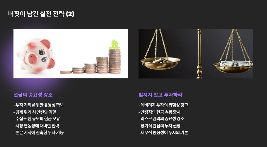 이는 단순한 보수성이 아니라, 좋은 기회가 왔을 때 즉시 투자할 수 있는 유연성을 위한 준비입니다.