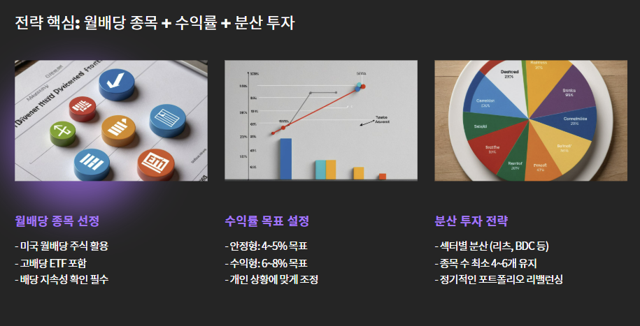 전략 핵심: 월배당 종목 + 수익률 + 분산 투자