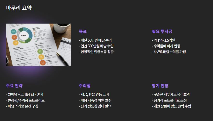 장기적으로 배당 재투자 전략을 병행하면 더 낮은 금액으로도 접근 가능합니다.