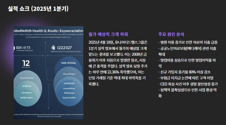 2025년 4월 18일, 유나이티드헬스는 실적 발표에서 월가 예상치를 크게 하회했다.
