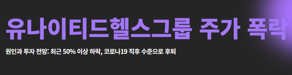 미국 최대 헬스케어 기업이자 보험사인 **유나이티드헬스그룹(UNH)**의 주가가 최근 50% 이상 하락했다.