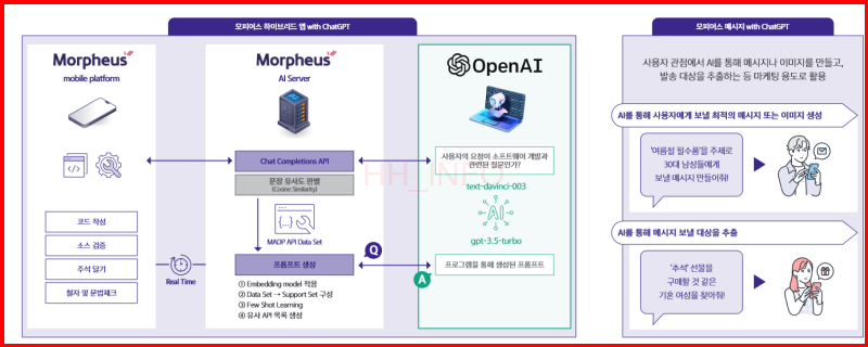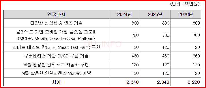 - AI 및 SaaS 적용 계획: AI를 활용한 업무 자동화 기능을 모피어스에 적용해 개발 생산성 향상, SaaS 형태의 모바일 앱 개발 플랫폼 서비스 제공