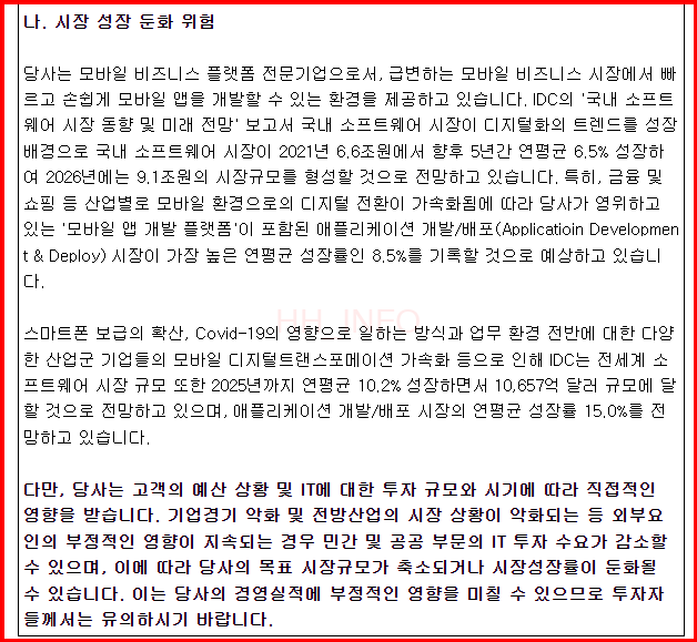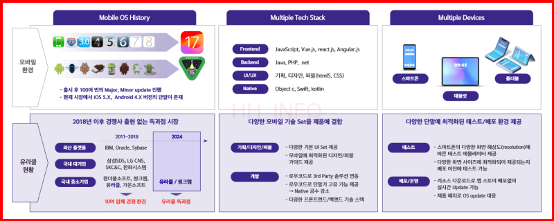 - 주요 사업: 기업에 최적화된 모바일 애플리케이션 개발 및 운영, 유지 보수 서비스 제공