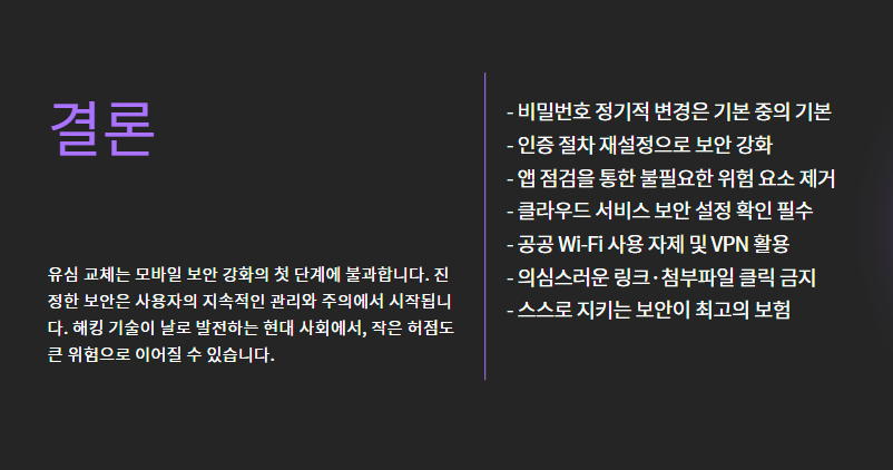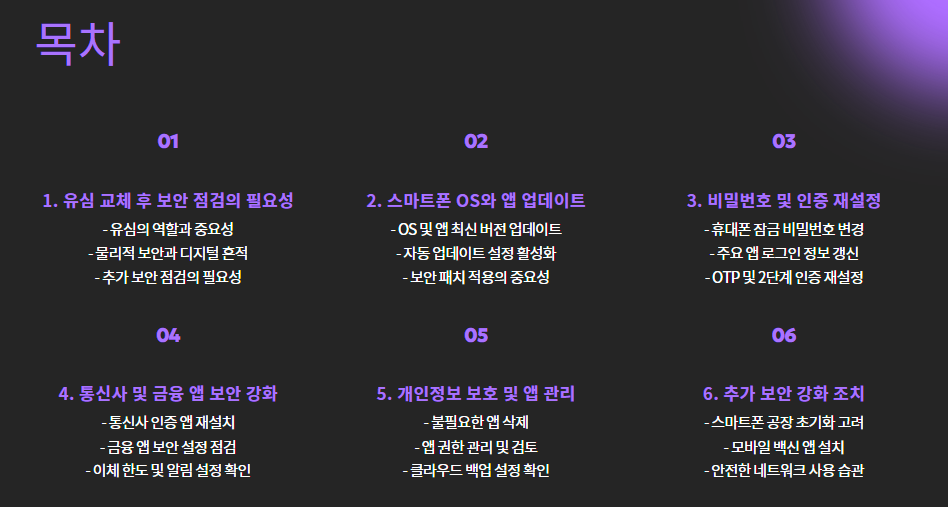 따라서 유심 교체 이후에도 추가적인 보안 점검이 필수입니다.