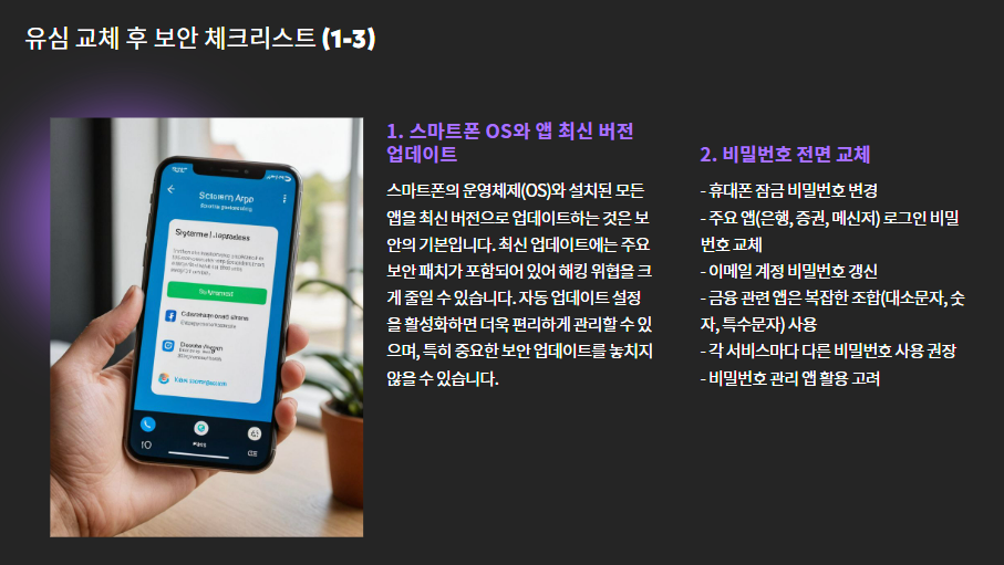 이 과정을 소홀히 하면, 새 유심을 꽂아도 정보 유출이나 금융 사고가 계속될 수 있습니다.