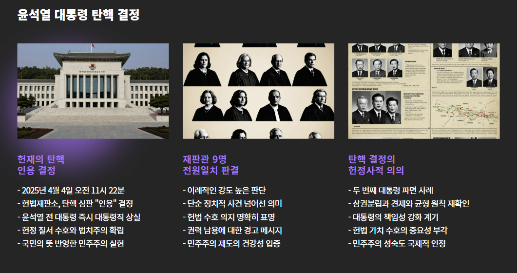 탄핵이라는 헌법적 절차는 끝났지만, 진짜 중요한 건 앞으로 우리가 어떤 리더를 선택하느냐입니다.