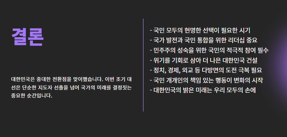 이번 선거가 단지 대통령 한 명을 뽑는 게 아니라, 국가의 방향성을 정하는 중대한 분기점이란 점을 잊지 말아야겠죠.