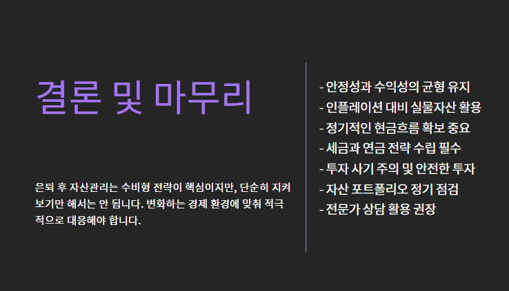 "은퇴 후 자산관리는 수비형 전략이지만, 마냥 지켜보기만 해선 안 됩니다."