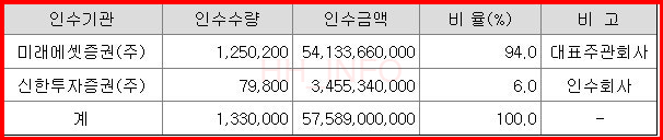 - 주관사: 미래에셋증권, 신한투자증권