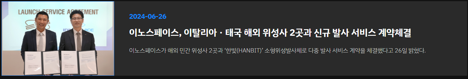 이노스페이스는 하이브리드 로켓을 개발하는 우주 발사체 스타트업입니다. 발사체를 제작하고 발사 서비스를 제공하는 항공 우주선 및 보조장치를 제조하는 기업이죠. 작년 3월에는 국내 최초로 시험 발사체 한빛-TLV 발사에 성공하며, 내년 한빛 나노 발사를 준비하고 있습니다. 아직 상업적 발사에 성공하지 못해 매출액이 적고 영업이익은 마이너스인 상태입니다.