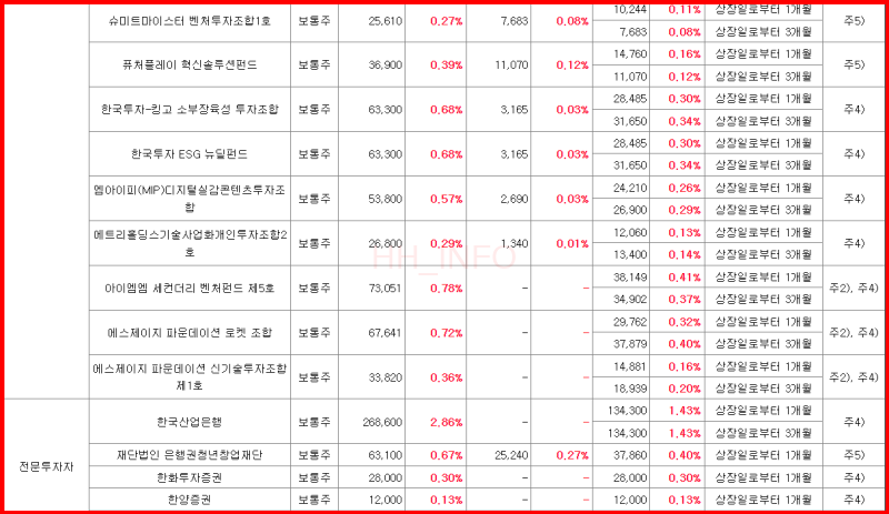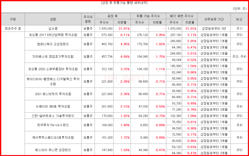 - 의무보유: 1.99%