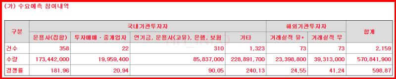 - 균등 청약: 40만 계좌로 계산하면 대부분 1주는 배정받을 수 있을 것입니다.