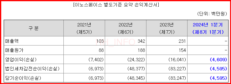 이노스페이스는 기술특례상장 요건으로 코스닥 시장에 상장하며, 한국거래소가 지정한 전문평가기관 2개로부터 각각 A등급을 받았습니다. 그러나 매출액은 미미하고 적자가 크기 때문에, 안정적인 수익을 기대하기는 어렵습니다.