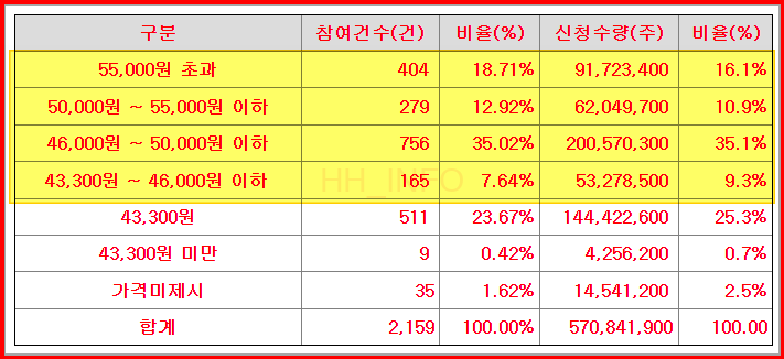 이노스페이스 공모주 수요예측 결과는 598.87:1이었어요. 이는 올해 진행된 공모주 중에서는 하위권에 속하는 결과입니다. 공모가는 상단인 43,300원에 결정되었답니다. 참여기관 중 74.29%가 상단을 초과하여 적었지만, 의무보유확약률은 1.99%로 상당히 낮은 결과가 나왔습니다.