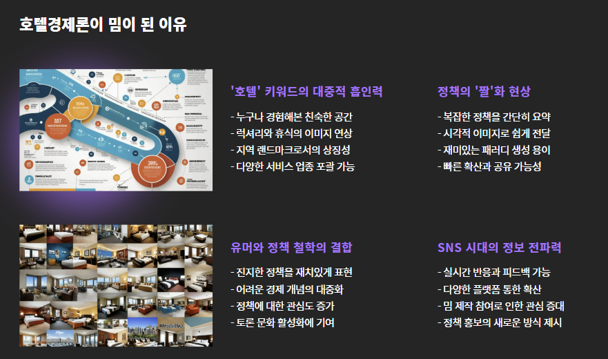 ‘호텔경제론’은 단순한 유머로 소비되기엔 아까운 발언입니다. 밈을 넘어서 정책 철학과 경제 이해가 담긴 말이었다는 점, 오늘의 포스트로 확인하셨죠?