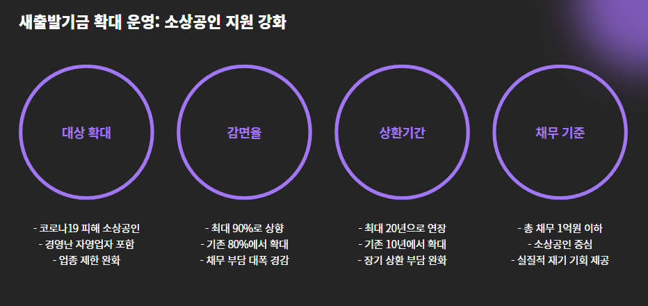 취약 소상공인의 장기 상환 부담 완화와 회생 기회 보장에 초점을 맞췄습니다.