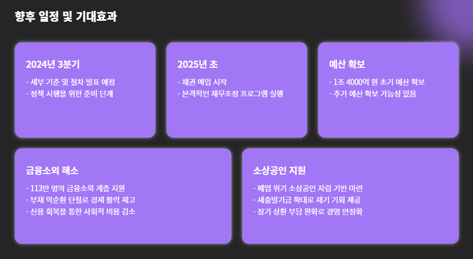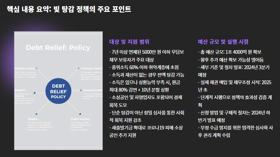 - 실행 시점: 세부 기준은 2024년 3분기, 실제 탕감은 2025년부터 본격화
