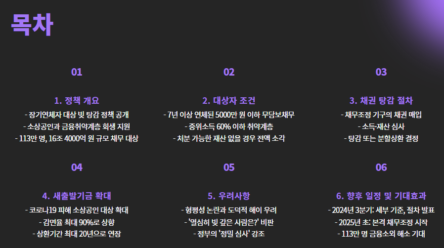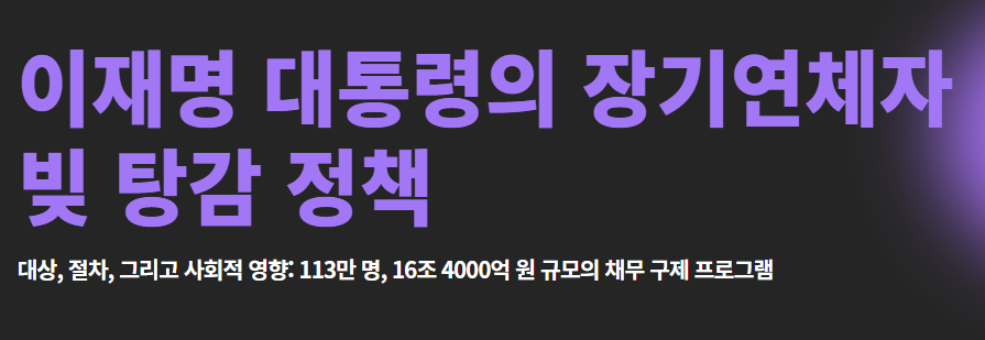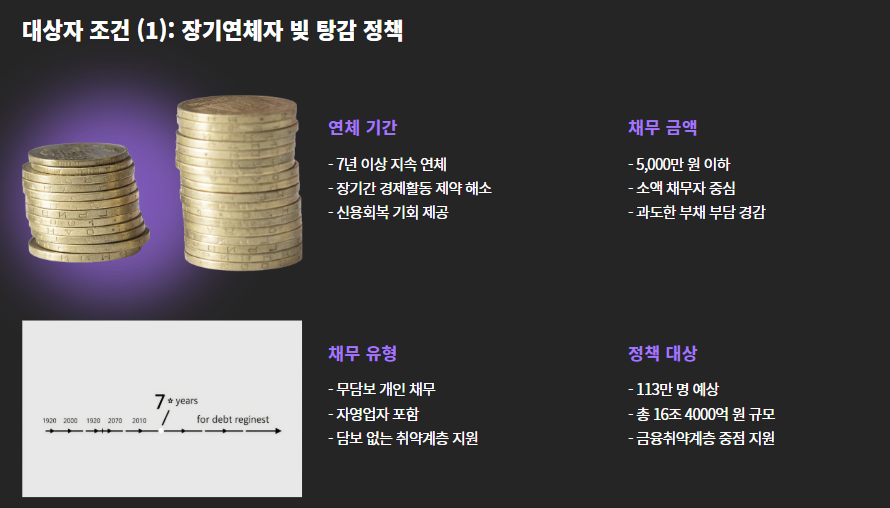 이번 조치는 소상공인과 금융취약계층의 회생을 지원하기 위한 구조적 해법으로, 113만 명, 총 16조 4000억 원 규모의 채무가 대상입니다.