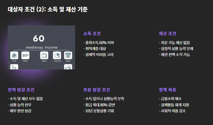 - 대상: 7년 이상 연체된 5000만 원 이하 무담보채무 보유자