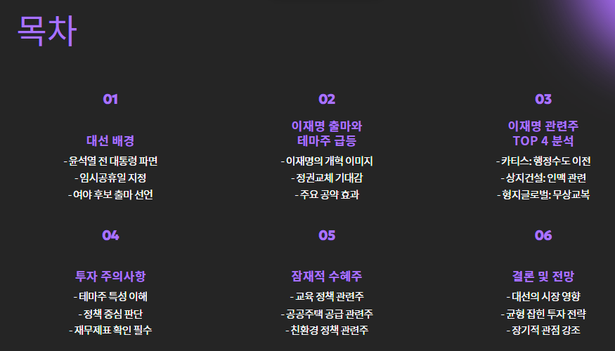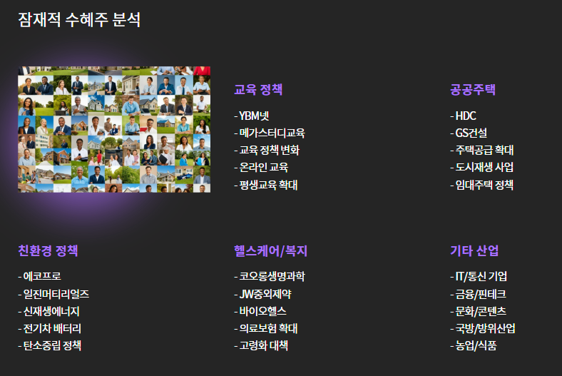 ✅ 저출산·무상복지·행정수도 등 공약 정책 수혜주 기대