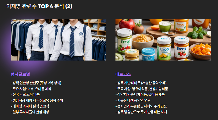 ✔ 정책 연관형 관련주 (무상교복 정책)