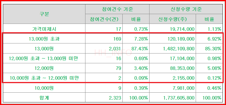 - 균등 청약: 예측 배정 확률은 약 80%로 1주를 배정받을 가능성이 높습니다. 최근 공모주 열기 감소로 인해 전체 배정도 예상됩니다.