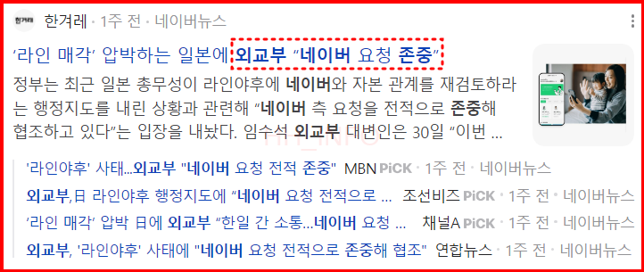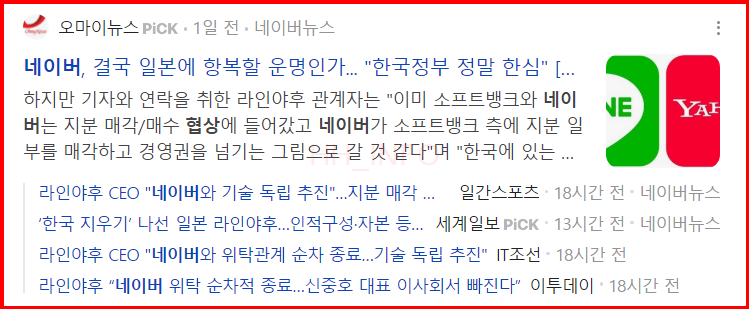 일본 정부의 압박으로 인해 라인의 지분 매각이 현재 논의 중에 있습니다.