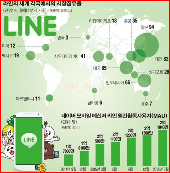 2011년 일본 동아시아 지진 이후 라인의 사용자 수가 급증하면서 일본 국민 메신저로 자리잡았습니다. 현재 일본에서는 가장 많이 사용되는 메신저로, 사람들의 생활에 깊숙이 뿌리를 둔 상태입니다.