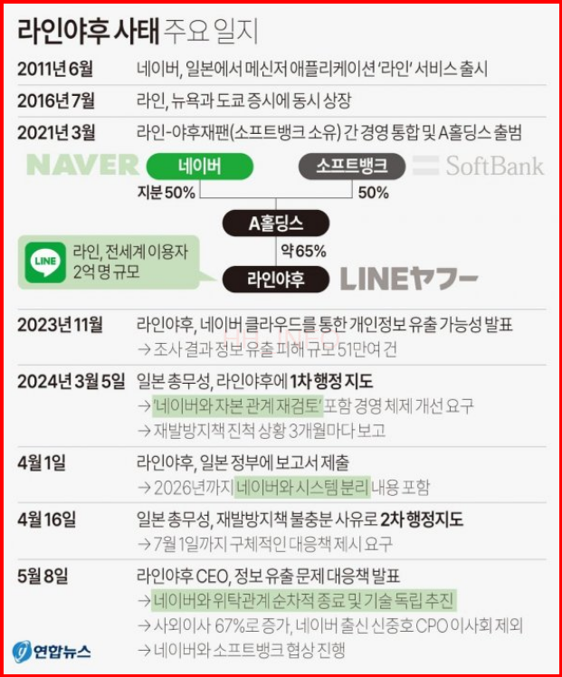 일본 정부는 라인의 개인정보 유출 사건 이후 지분 매각을 촉구하고 있습니다. 이는 일본 역사상 드물게 발생하는 일이며, 현재 네이버는 이 문제에 대응하고 있습니다.