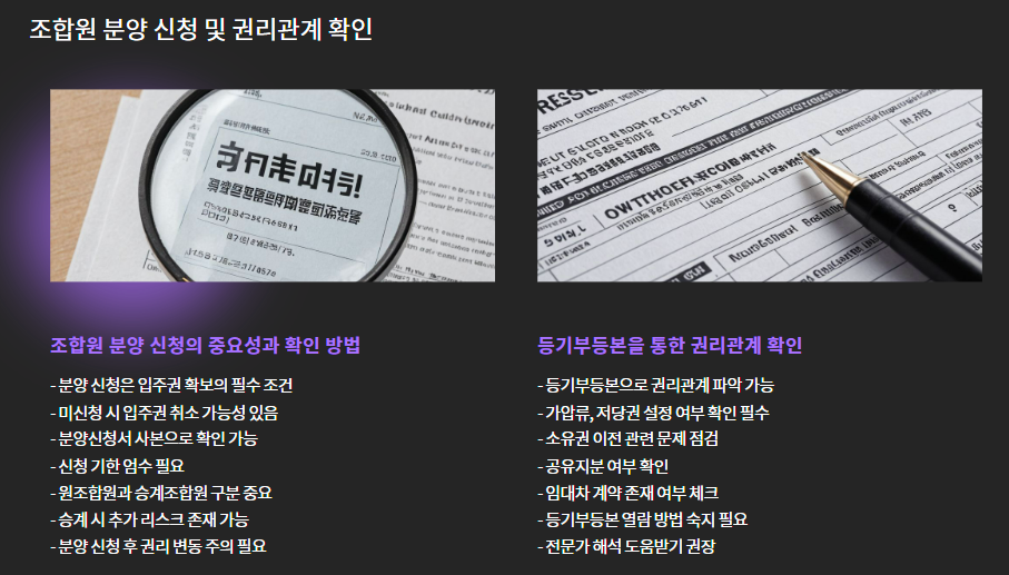 - 조합원 분양 신청을 했는지 반드시 확인하세요.