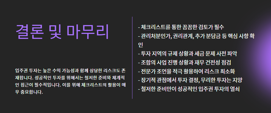 그래서, 입주권 투자를 준비할 때는 꼼꼼한 체크리스트가 반드시 필요합니다.
