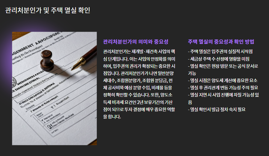 - 멸실되어야 진짜 입주권으로 인정되고, 세금상 주택 수 산정에도 영향이 있습니다.