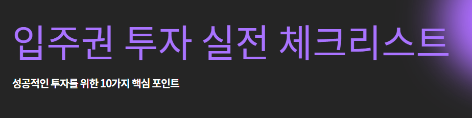 입주권 투자 실전 체크리스트 10가지