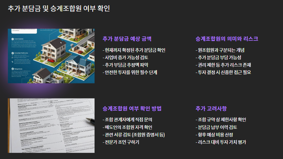 - 승계조합원은 추가 리스크(분담금, 권리 제한 등)가 있을 수 있습니다.