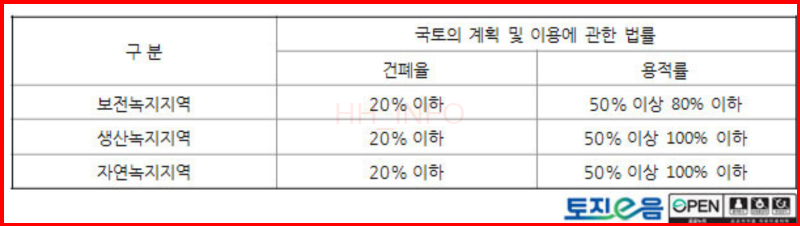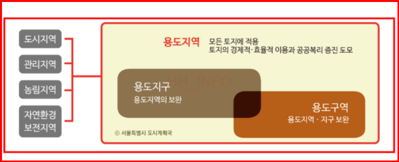- 관리지역: 도시지역과 농림지역의 중간 형태로서 도시화가 예상되지만 아직 도시지역으로 지정되지 않은 지역입니다.