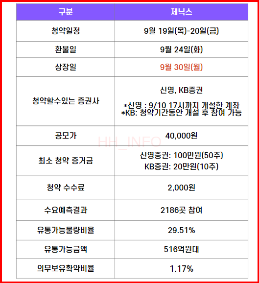 제닉스 공모주 청약에 참여하려면 신영증권 또는 KB증권 계좌가 필요합니다. 신영증권은 10월 10일 17시까지 계좌를 개설한 투자자만 청약할 수 있으며, KB증권은 청약 기간 중에도 계좌 개설 후 청약이 가능합니다.