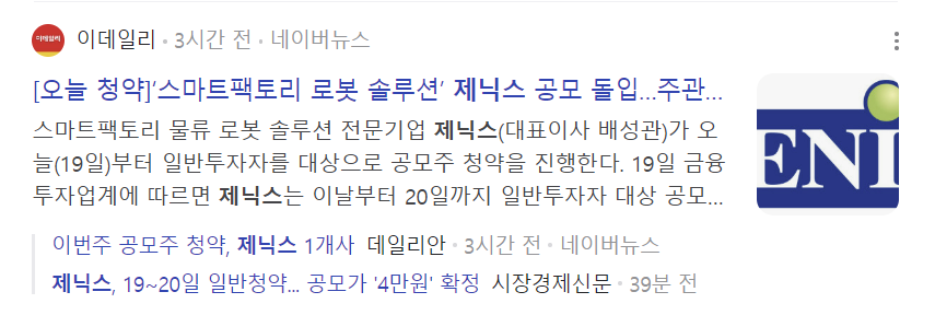 증권 > 증권일반 뉴스: 코스닥 상장이 예고된 제닉스가 오는 19일~20일 일반투자자들을 대상으로 공모주 청약을 받을 계획이다. 18일 한국거래소에 따르...