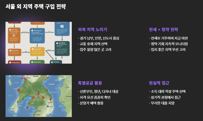 - 외곽 전세 + 청약 전략, 특별공급 활용, 현실적인 대출 계획으로 접근이 필요